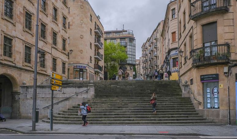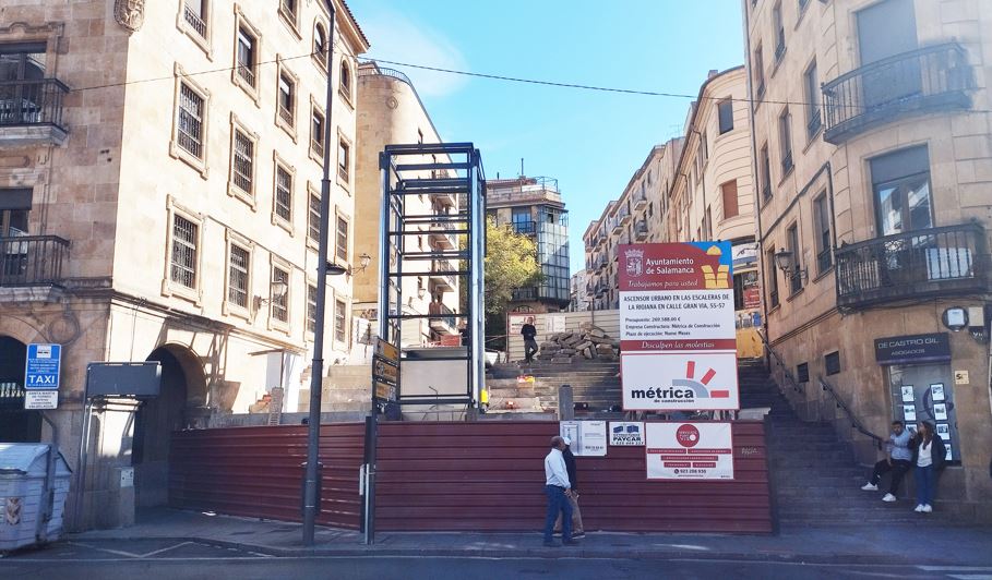 El Ayuntamiento de Salamanca inició en mayo las obras para instalar un ascensor en la Gran Vía 55-57, con el que se eliminará la barrera arquitectónica que supone actualmente las denominadas ‘escaleras de La Riojana’.