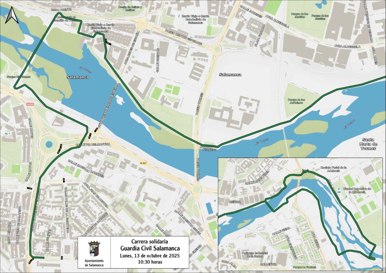 La celebración, este lunes 13 de octubre, de la tercera edición de la Carrera Solidaria Guardia Civil de Salamanca provocará diferentes cortes y desvíos de tráfico en la ciudad, según informa el Ayuntamiento.