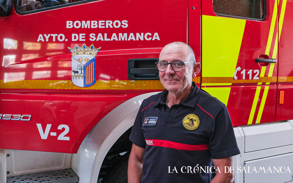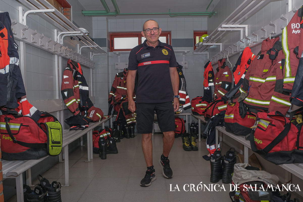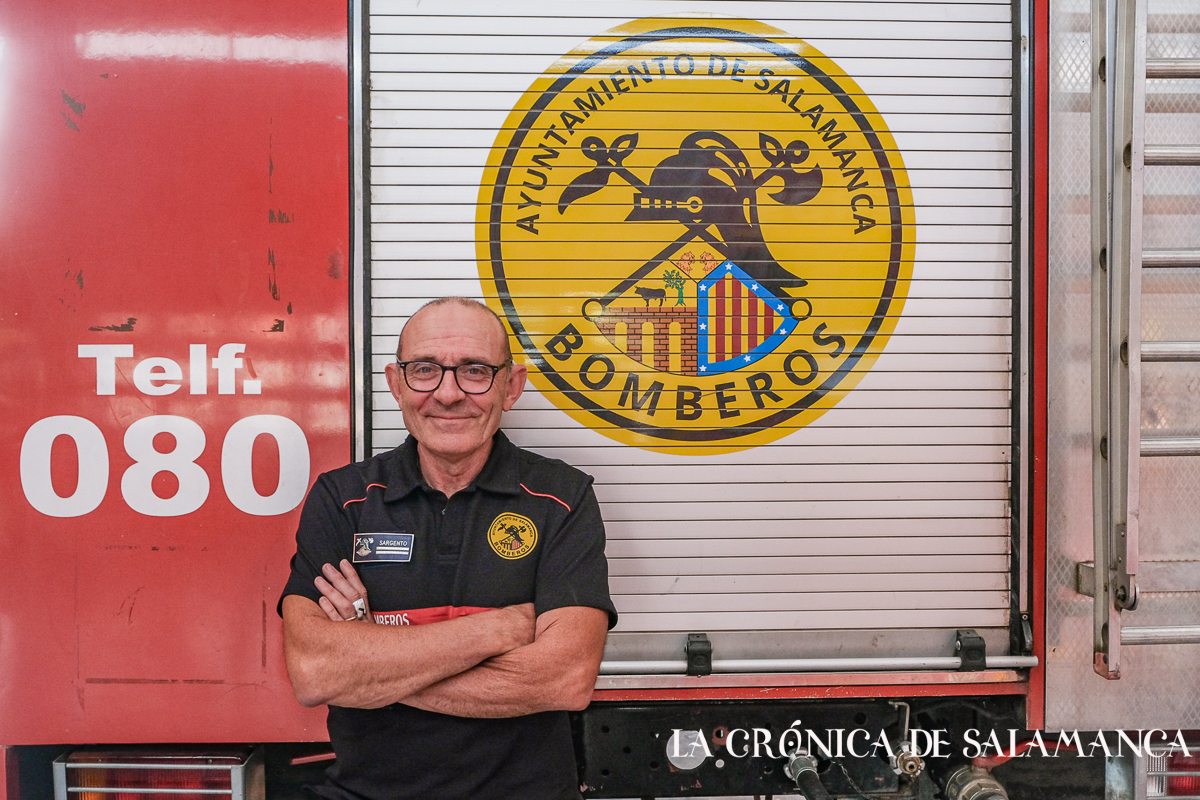 De risa fácil y de buena conversación. Se nota que es hijo de su padre, el gran profesor Emiliano Jiménez. José Santos Jiménez se ‘jubila’ después de casi cuatro décadas siendo bombero en Salamanca. Durante la charla recordará viejos tiempos, anécdotas tristes y muy graciosas y hablará de sus quemadura, de sus compañeros que son amigos, porque forman un equipo y de lo mucho que le gusta su profesión.