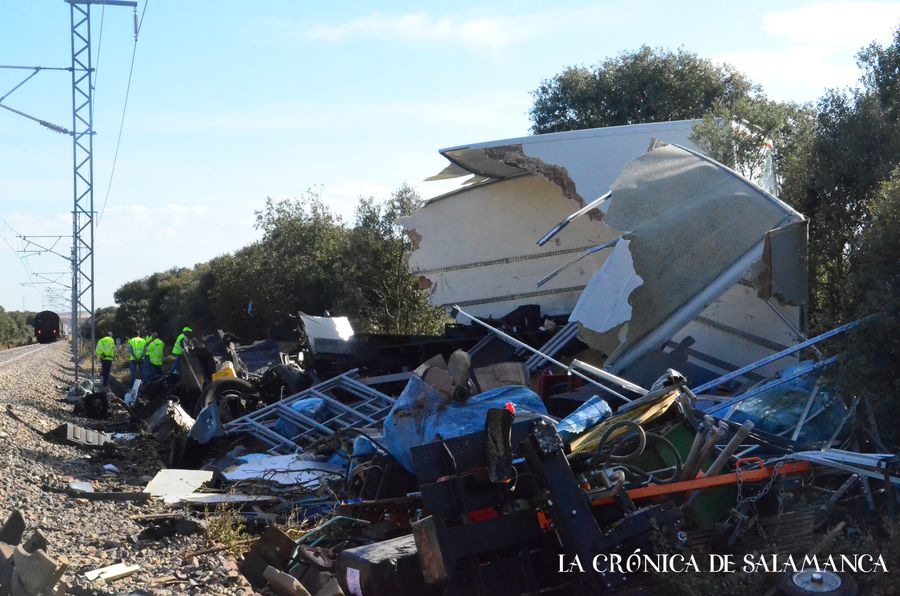 Un camionero murió este lunes de madrugada tras volcar en la autovía A-62, y caer en la vía, con tan mala suerte que pasaba por allí un tren que arrolló al camión y posteriormente descarriló.
