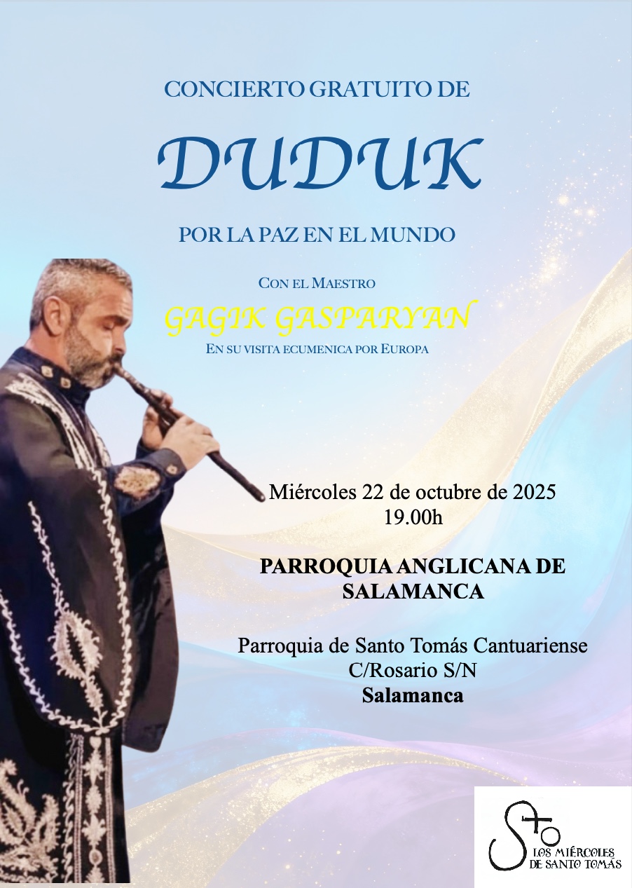 Garik Gasparyan ofrece un concierto de duduk este miércoles 22 en Santo Tomás de Cantuariense dentro de la programación cultural Los Miércoles en Santo Tomás.