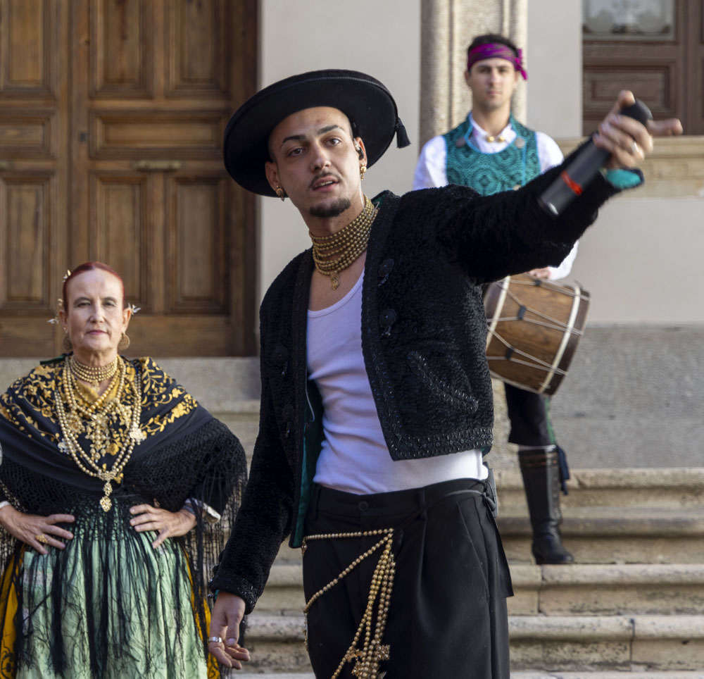 A la hora de representar el concepto en los escenarios, trata de adaptarse al espacio. Desde el formato en solitario respaldado por un DJ, hasta la puesta en escena de un despliegue más complejo con cuerpo de baile y músicos. “Solemos jugar siempre con una performance de lo tradicional y con los trajes charros, que siempre intentamos que todos sean de una parte de la provincia: el serrano, el de Peñaranda, el de la Armuña, el de Villavieja…”, enumera. A partir de ahí, elabora un guion y lo representa en formación después de varios ensayos. La próxima cita es un ‘showcase’ en Calibre Club el 24 de octubre, pero habrá más, incluida la gala de Jóvenes Talentos del Ayuntamiento o lo de Cruz Roja.
