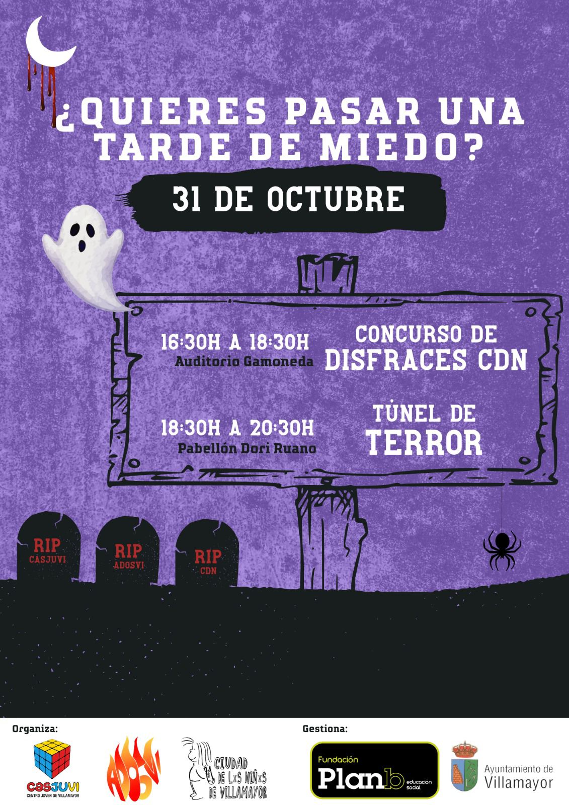A continuación, de 18:30 a 20:30 horas, el Pabellón Dori Ruano se transformará en un espeluznante Túnel del Terror, organizado por CASJUVI (Casa de la Juventud de Villamayor) y AsoviI, una experiencia pensada para los más valientes que quieran adentrarse en la noche más aterradora del año.