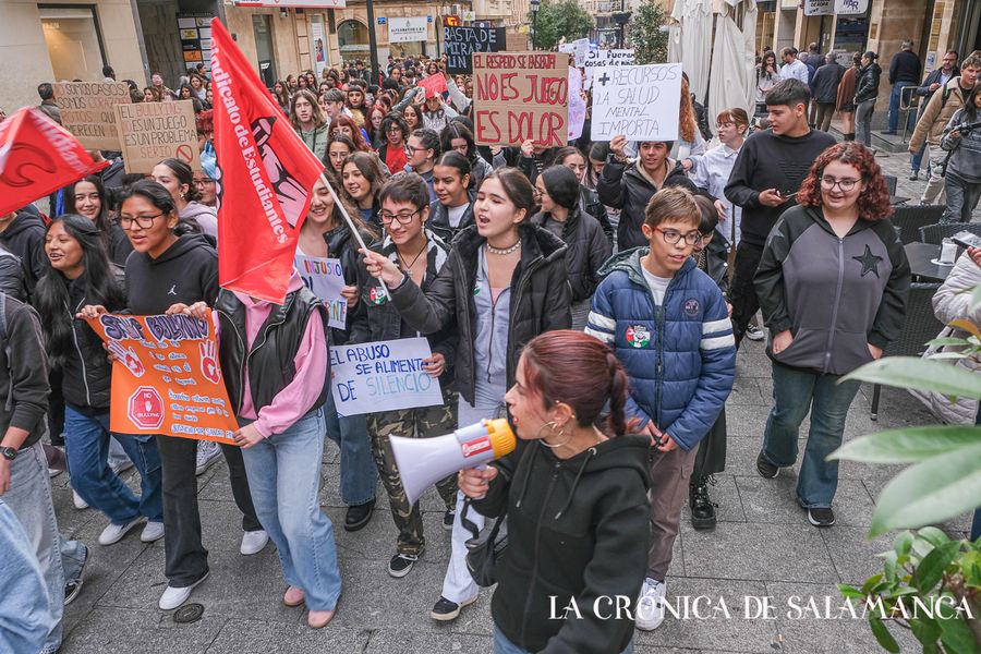 Los estudiantes salmantinos clamaron este martes contra el acoso escolar y las circunstancias que lo consienten en el sistema escolar.