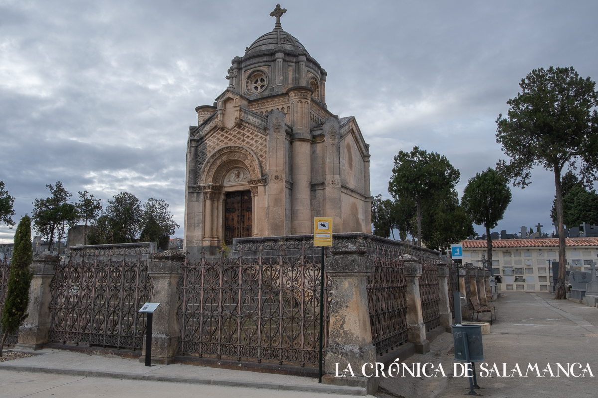 Como especiales son los panteones del cementerio charro. Uno de los más monumentales es el de Teresa Zúñiga, ‘La Corneja’, de estilo neoromántico, construido en 1890. Teresa Zúñiga dejó una huella importante en el urbanismo de la ciudad. Era la dueña de casas y terrenos que estaban entre la Plaza Mayor y la plaza de Anaya. Al adquirirlas el Ayuntamiento ideó lo que hoy es la Rúa.