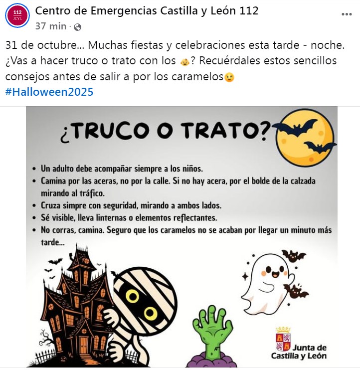 Salir a pedir chuches durante la noche del viernes, en la que se celebra Halloween, requiere sus ‘trucos’ y ‘tratos’ para hacerlo bien y sin peligro. Por eso, desde Emergencias 112 Castilla y León difunden una serie de recomendaciones para que los más pequeños disfruten sin correr riegos.