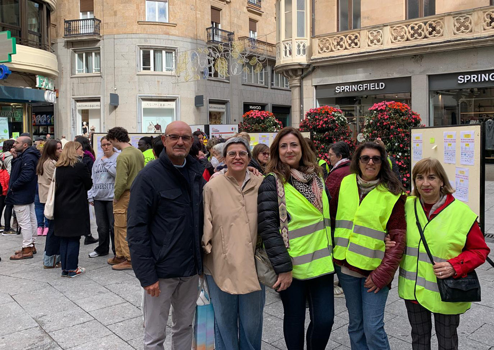 El céntrico emplazamiento fue el lugar elegido para que más de 22 entidades enmarcadas en la Mesa de Atención Psicosocial de Salamanca se encontraran para verse y saludarse. Además de hablar y compartir pareceres y, por supuesto, jugar, porque allí se encontraba una ruleta que te llevaba a detenerte en la importancia que tienen en tu vida el trabajo, el ocio, la familia, las relaciones sociales, el cómo te tratas, el cómo te cuidas…