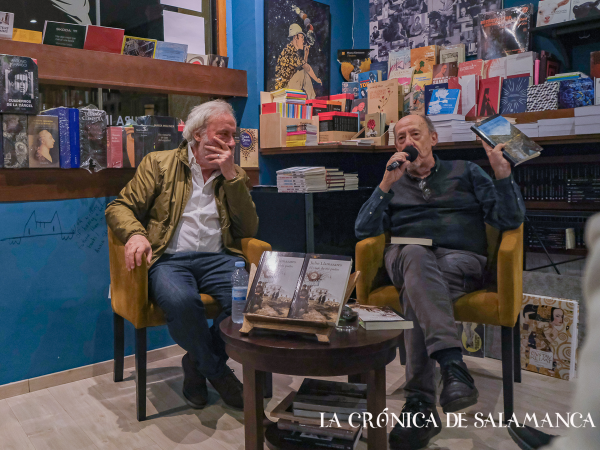 Vino a Salamanca a presentar El viaje de mi padre a Letras Corsarias. Nos encontramos con Julio Llamazares cuando recogía la llave de la habitación del hotel, recién llegado de viaje, pero en plena forma, sin ápice de cansancio. Fue un gusto conversar con él de la Guerra Civil, un poco del rey, mucho de los voceros del reino y al final… de una profesión que admira.