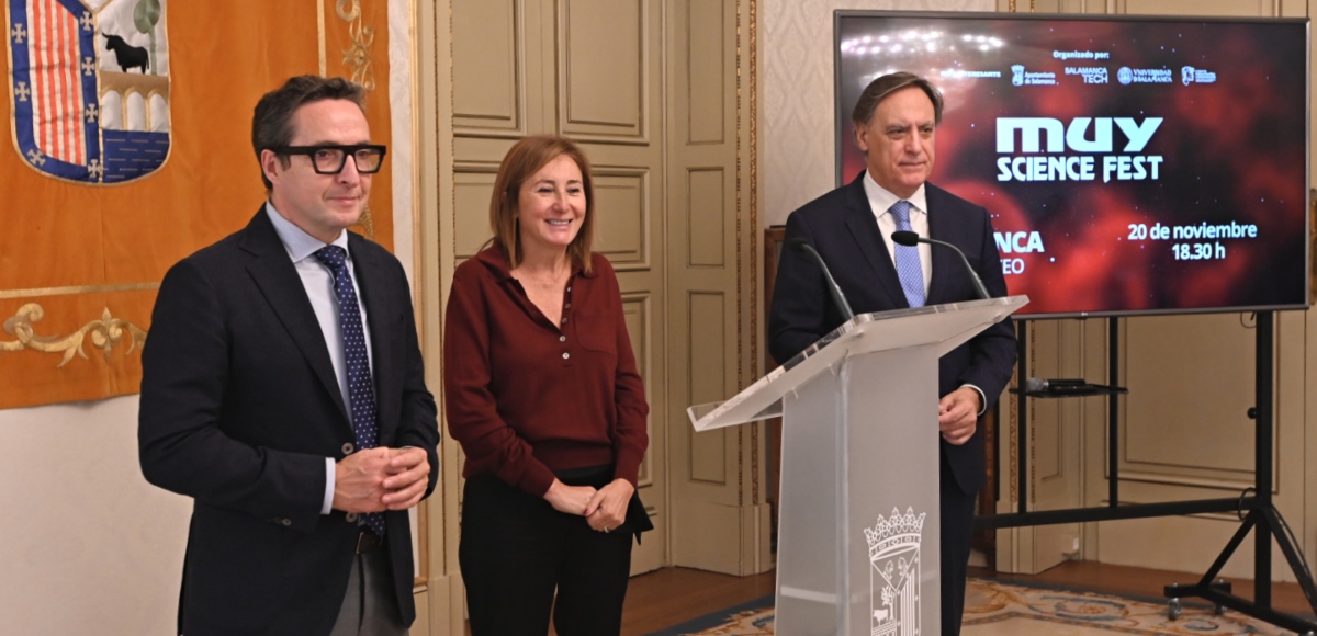 El alcalde de Salamanca, Carlos García Carbayo, el rector de la Universidad de Salamanca, Juan Manuel Corchado; y la editora de la revista Muy Interesante, Marta Ariño, han presentado el martes esta cita. Según ha señalado el primer edil, el MUY Science Fest será “una gran oportunidad” para que toda España se familiarice con lo que está sucediendo en la ciudad vinculado a la ciencia, la tecnología y la innovación.