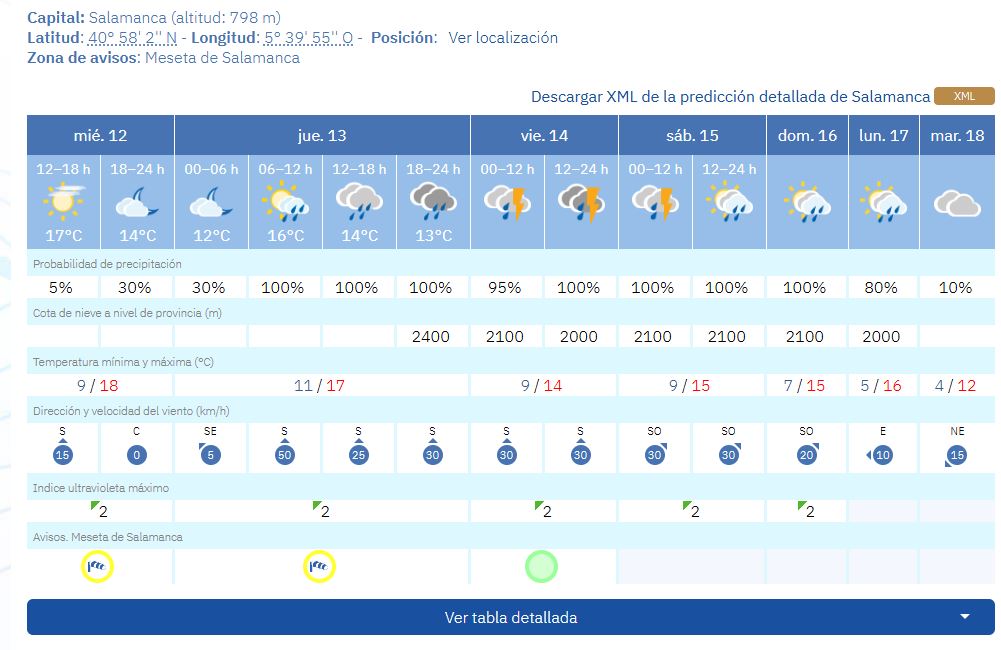 El tiempo será desapacible, pero las temperaturas serán bastante suaves , teniendo en cuenta las alturas del año a las que estamos, con mínimas que solo rascarán a partir del domingo por la noche, y máximas inusualmente altas para estar a mediados de noviembre en Salamanca.