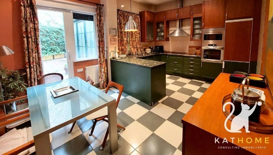El anuncio lo publica la inmobiliaria KatHome e incluye bastantes fotografías que permiten ver la fachada exterior de la propiedad, así como hacerse una idea del estilo interior y del patio o jardín con el que cuenta. El piso tiene 280 m² construidos (221 m² útiles), cuatro habitaciones, cocina, tres baños completos, calefacción central y es una primera planta.