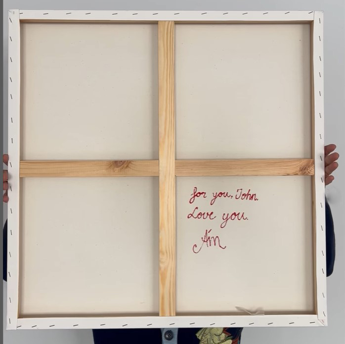 Parece que no solo muestra sus pinturas en las redes, también se las ha enseñado a John Travolta y lo ha obsequiado con uno.