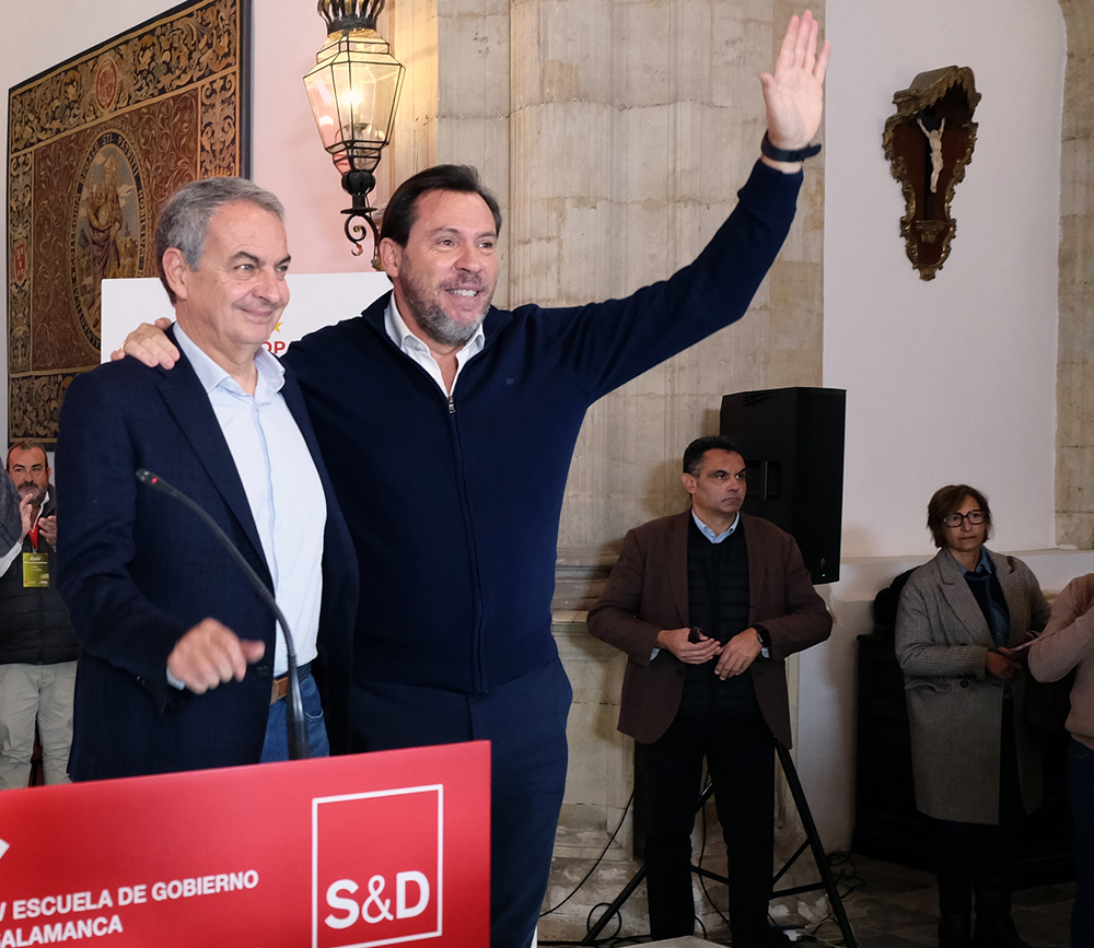 “No es con Pedro Sánchez. Los millones de votantes del PSOE sabemos de qué va esto; no es el ‘sanchismo’, es la España que sube el Salario Mínimo, que defiende la paz en Gaza y afirma el conocimiento, la ciencia”, subrayó Zapatero y reprochó al PP el cuestionamiento de la igualdad o el cambio climático a raíz de la aparición de Vox. “Ahora ya esto no es una democracia. Estamos a un paso de que se agarren al terraplanismo y digan que la Tierra es plana o que Salamanca no tiene Universidad. La crítica es sana en democracia, pero la negación de hechos objetivos es preocupante. Teníamos que abrir un periodo político en la que la verdad ocupe un espacio”, reclamó.