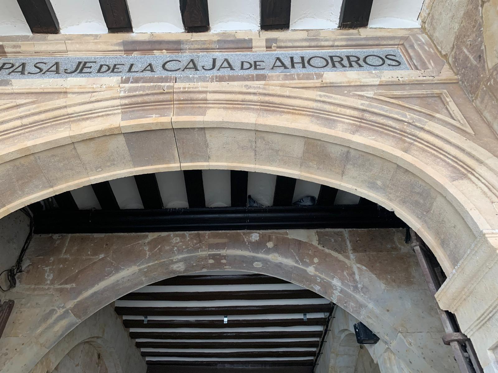 Se pueden ver ya palomas con su nido hecho entre las vigas de madera del pasaje de Caja de Ahorros de la Plaza Mayor.