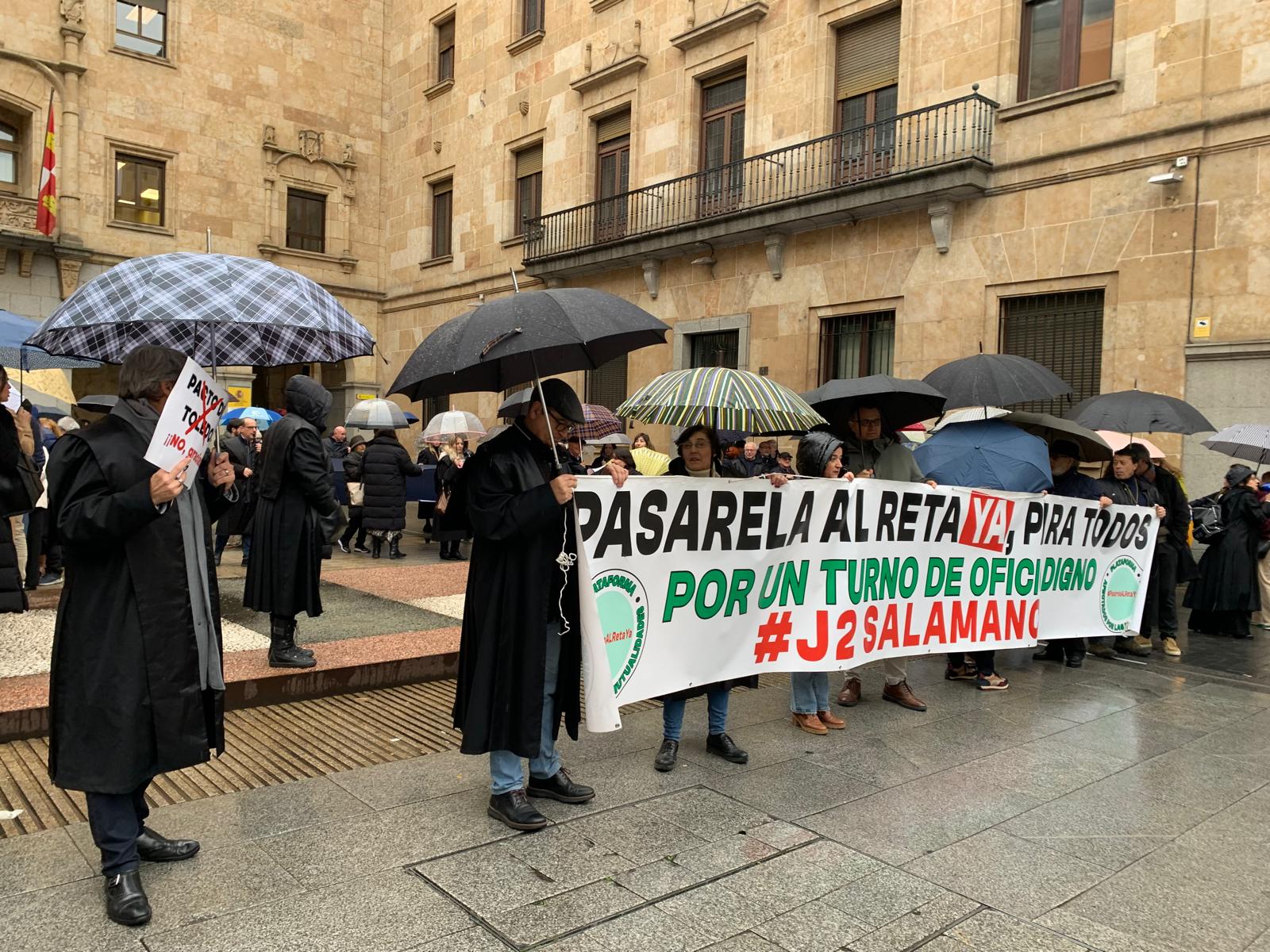 Empezaron los abogados y los procuradores por aquello de que eran más, pero ya se han unido a su lucha arquitectos técnicos, sector de ingeniería, arquitectura, química… Alzan la voz y los silbatos para decir que ¡basta ya! Y exigen a los políticos que hagan su trabajo, que activen la tramitación parlamentaria paralizada que finalice con una pasarela al reta justa para todos y con pleno reconocimiento de los años en las distintas mutualidades.