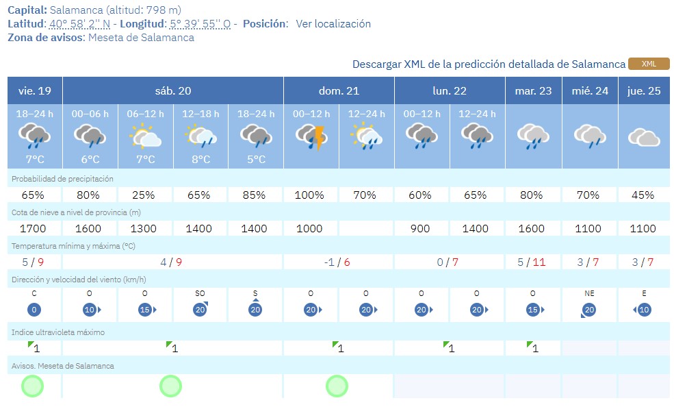 Esta es la previsión dela Aemet para la ciudad del Tormes: