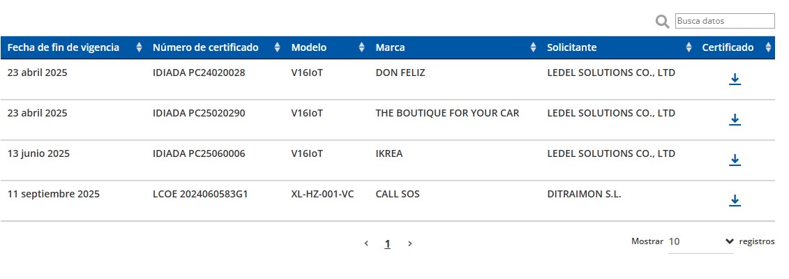 En esta tabla se recogen las marcas y modelos con certificados de vigencia finalizada que amparaban su fabricación siendo válidas para su uso por los conductores que las hayan adquirido hasta el fin de su vida útil.