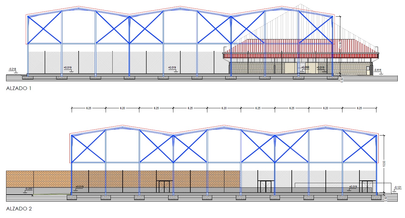 Las tres pistas de tenis se cubrirán con una estructura de once metros de altura en forma de panel sándwich acústico en acero galvanizado, mientras que en los laterales de la cubierta se realizará el cierre hasta una altura de cinco metros por debajo del alero. Además de la cobertura, las próximas actuaciones contemplan la adecuación de las dimensiones actuales de las pistas a las reglamentarias, según establece la norma NIDE 2024 para tenis, con el objetivo de albergar competiciones oficiales. Se sustituirá la capa deportiva por una de hormigón con varias capas de resinas sintéticas de color, añadiendo arena fina para mejorar la textura y adherencia.