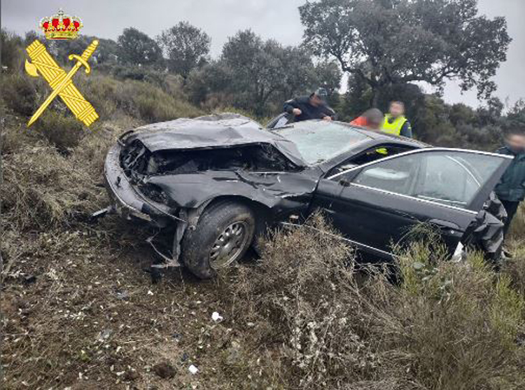 Pero antes de que tuviera el accidente, la Guardia Civil de Vitigudino estableció de inmediato un operativo de búsqueda del vehículo por patrullas de seguridad ciudadana y tráfico, siendo avistado el turismo en la CL-517, sentido Salamanca, emprendiendo la huida al verse descubierto.
