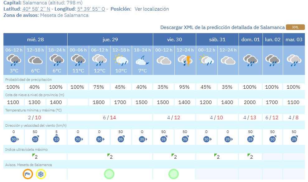 La nevada mantiene a la ciudad del Tormes en alerta amarilla por las precipitaciones de nieve y en aviso naranja por el viento, al menos hasta media mañana.