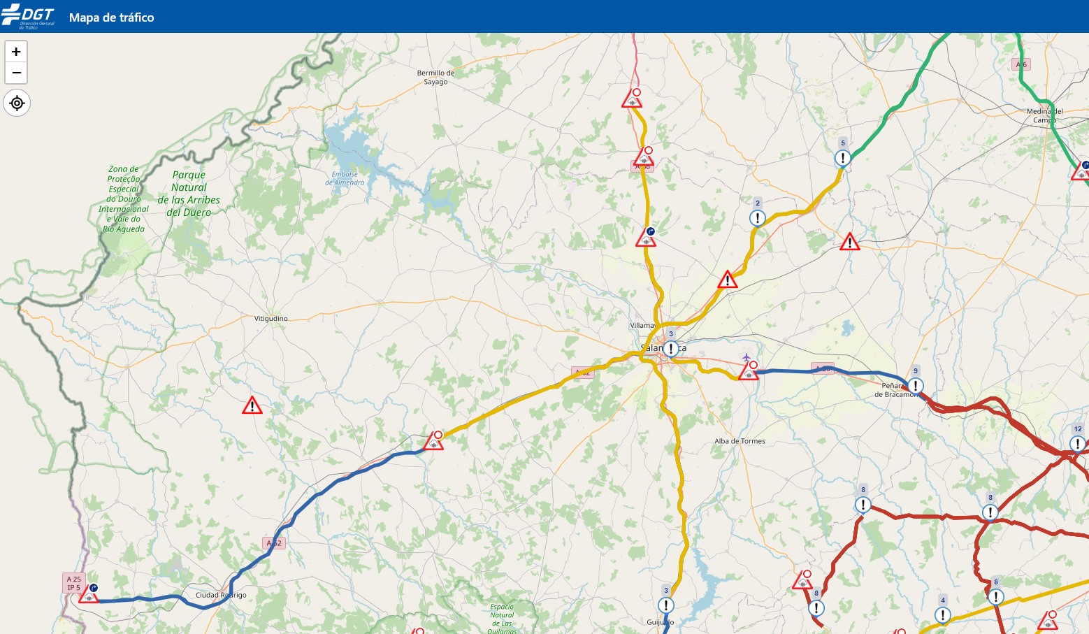 A las 11 horas, las restricciones afecrtaban a parte de las tres autovías salmantinas, en las inmediaciones de la ciudad edl Tormes.