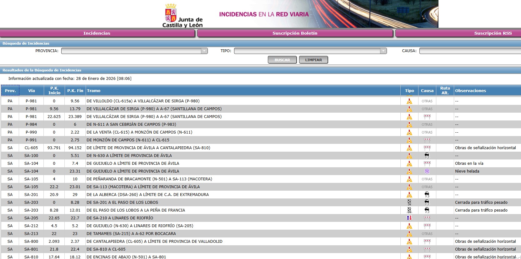 Puedes consultar as incidencias del tráfico en este enlace de la Junta de CyL, y también en este de la DGT.