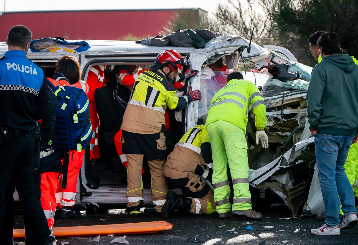 Emergencias Sanitarias de que han atendido a ocho personas heridas, todos hombres. De ellas, seis han sido trasladadas al hospital de Salamanca. Han enviado al accidente una UVI móvil, una Unidad Enfermerizada de Emergencias (UEnE) y tres ambulancias de soporte vital básico, además de un equipo médico de Atención Primaria del centro de salud de Ciudad Rodrigo.