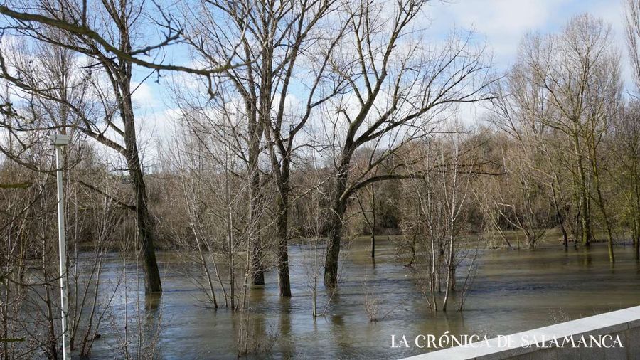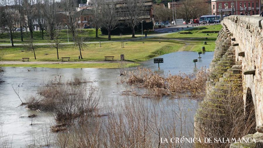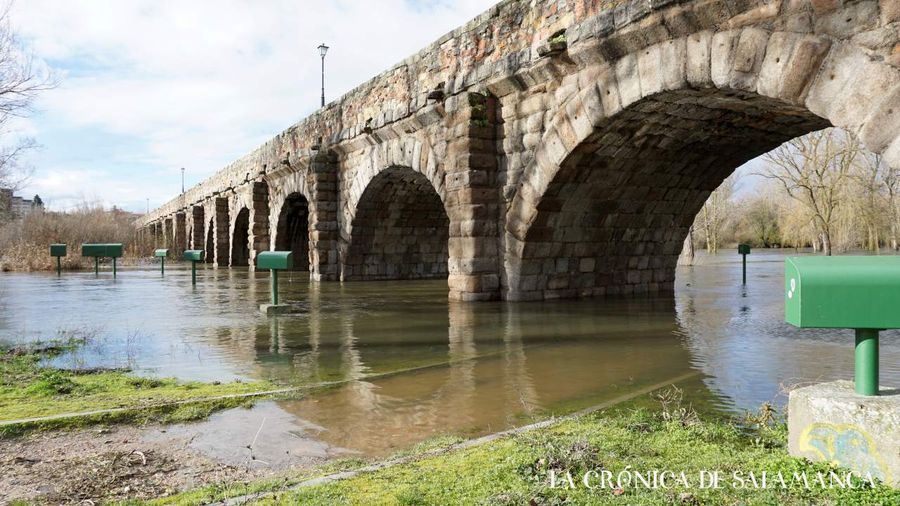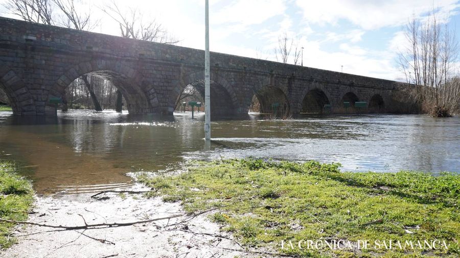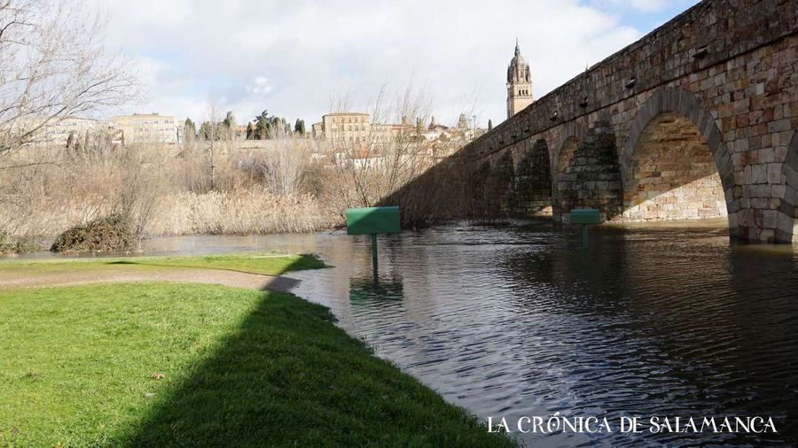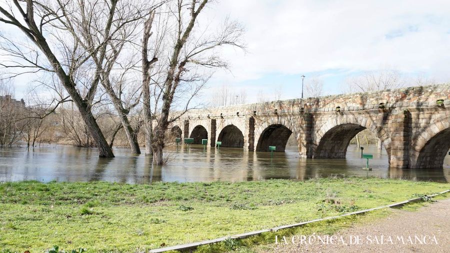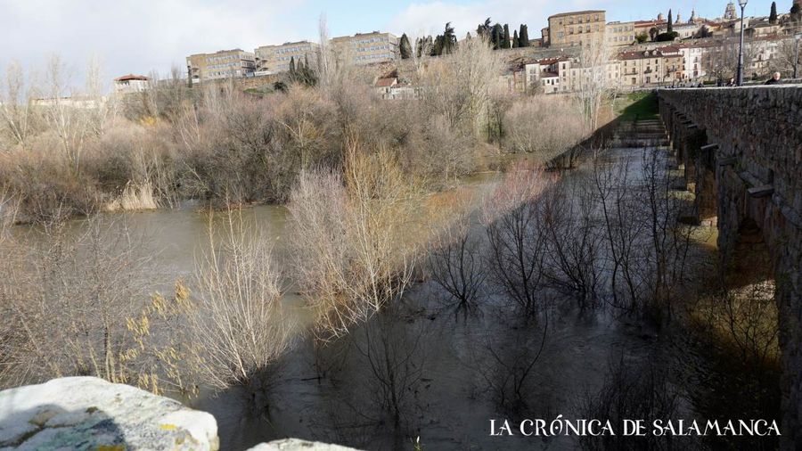 El desembalse de la presa de Santa Teresa suele traducirse en uno o dos días en una crecida del río Tormes a su paso por Salamanca, dejando escenas que no por recurrentes dejan de ser espectaculares.