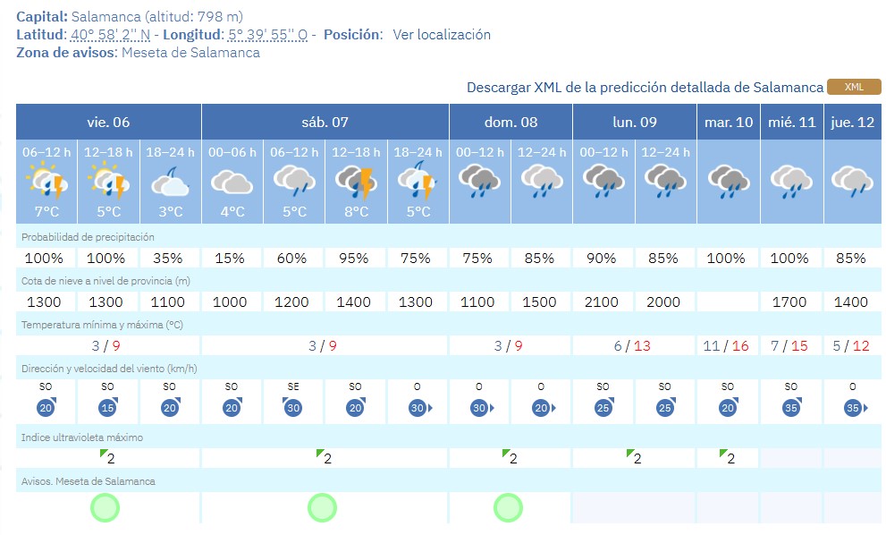 Previsiones para Salamanca capital:
