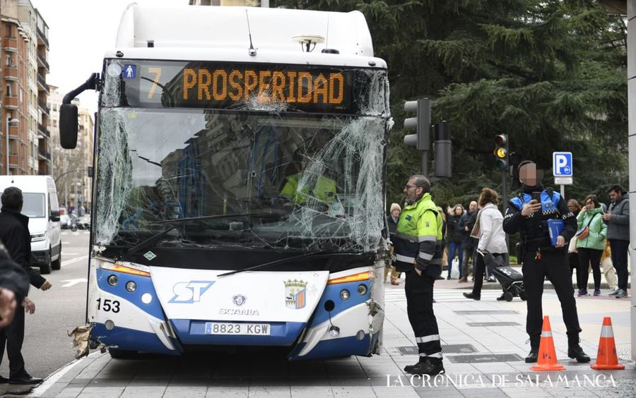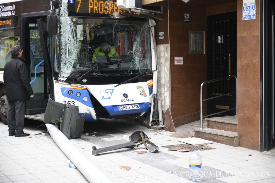 El siniestro se produjo a las 13.25 horas, a la altura del número 152 de la avenida, en la esquina con la plaza del Barrio Vidal, cuando el el vehículo, que circulaba en sentido Torres Villarroel, se fue a la izquierda sin control y colisionó contra una farola y posteriormente se estrelló contra el edificio.