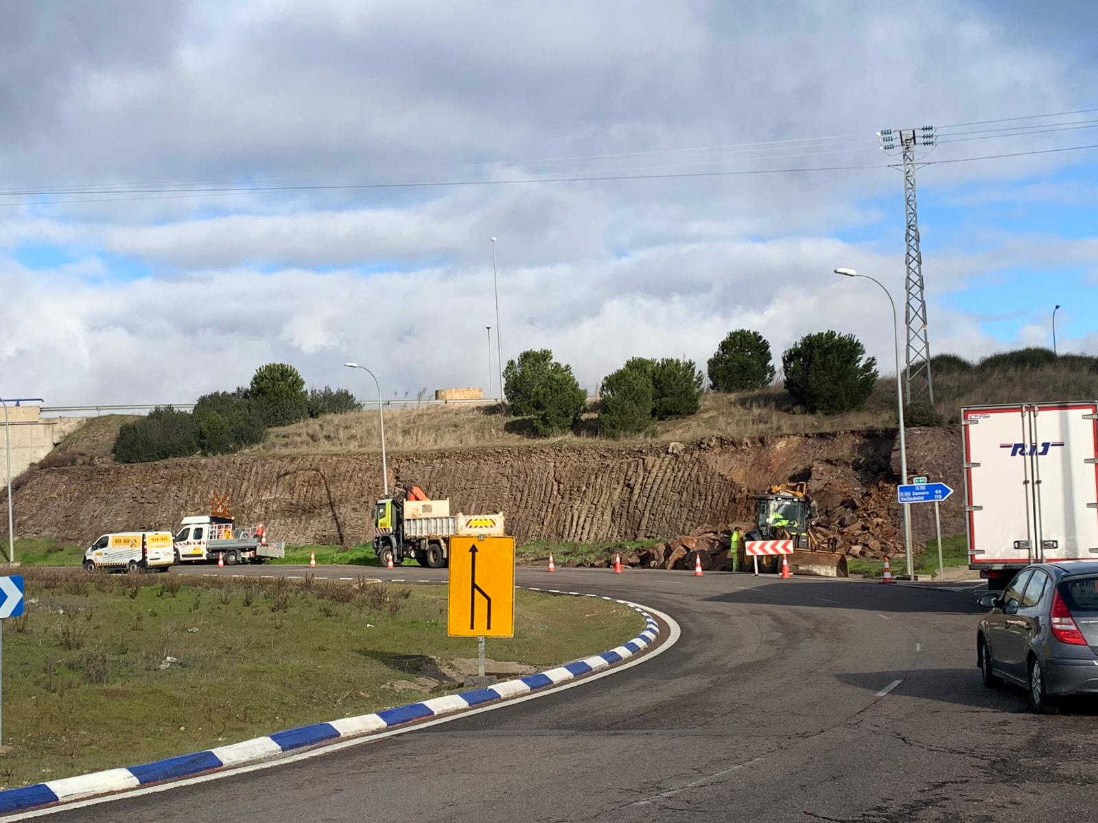 Durante gran parte de la mañana de este martes, estuvo cortado uno de los carriles de la rotonda, para que los trabajadores pudieran desempeñar su trabajo y evitaran riesgos a los conductores.