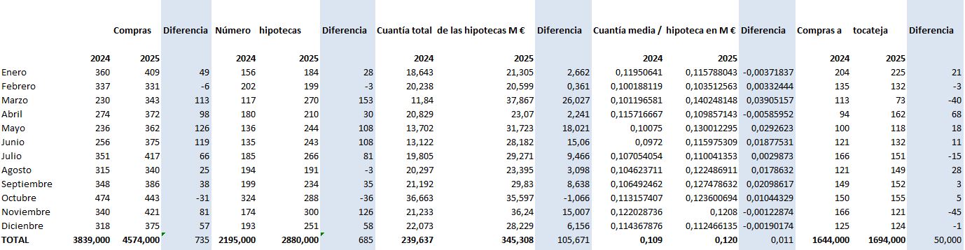 El mercado hipotecario ha acompañado este crecimiento. Se constituyeron 2.880 hipotecas, es decir, 685 más que en 2024. Sin embargo, lo más llamativo no es solo el número, sino el importe de las mismas: