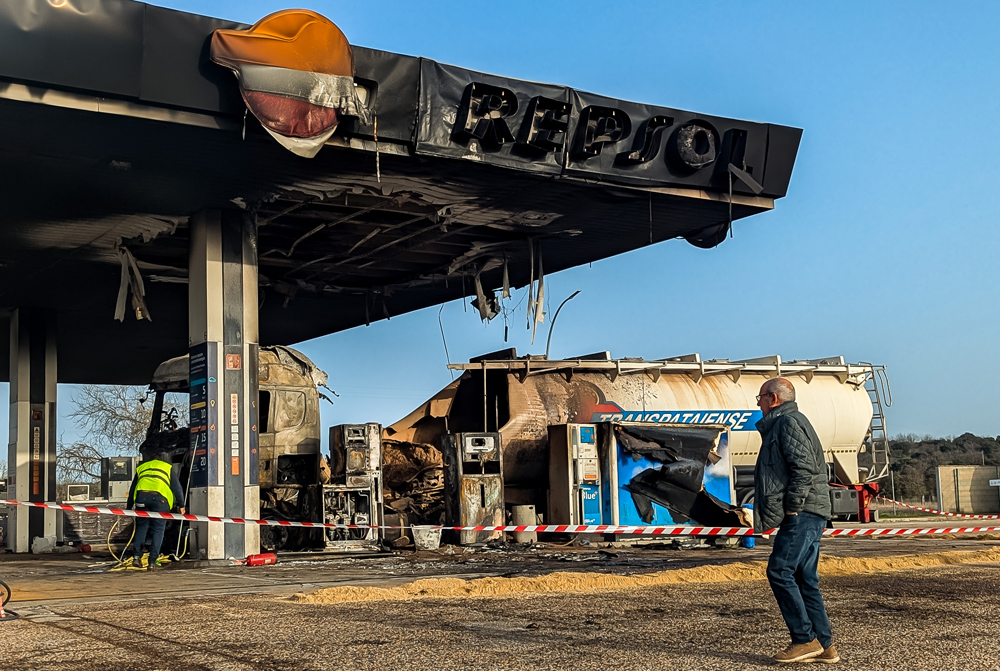 Un camión echó a arder mientras repostaba combustible anoche en una estación de servicio de Valdecarpinteros, en el término municipal de Ciudad Rodrigo, provincia de Salamanca.