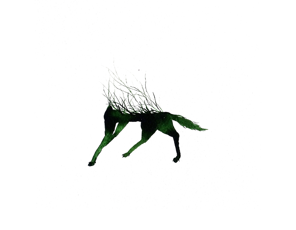Las figuras humanas están despojadas de identidad. Son siluetas sin rasgos, concentradas en acciones elementales: sostener, avanzar, vigilar, esperar. No representan individuos, sino posiciones. Su relación con el entorno es inestable y precaria, como si el suelo pudiera desplazarse en cualquier momento. El paisaje no funciona como escenario, sino como una estructura frágil, atravesada por tensiones. La presencia de animales -lobos, aves,