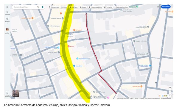 La calle Obispo Alcolea es bastante larga y puede comunicar muy bien la zona alta del Teso de los Cañones y la guardería de Pizarrales con la parte inferior del barrio (zona del centro de salud, la Iglesia Nueva, etc.) Es una calle sin aceras y una propuesta audaz para el Ayuntamiento sería hacerla peatonal.