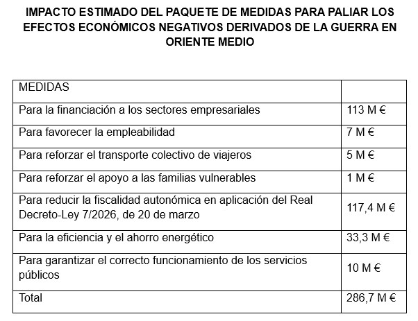 El total de 28 medidas tendrá un impacto que se estima en 286,7 millones de euros, de acuerdo con el desglose indicado en el cuadro adjunto.