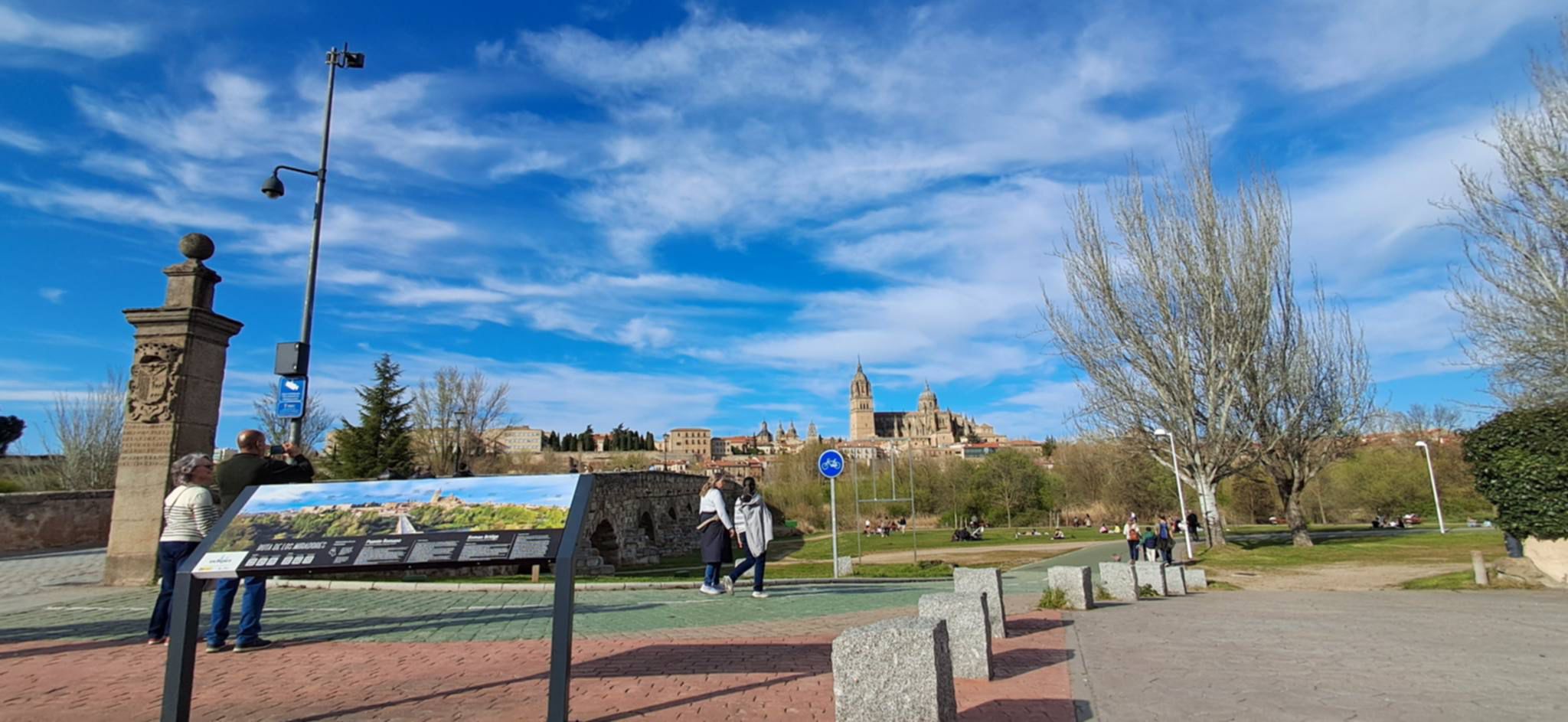 Lo que muestran estas imágenes -señales en las proximidades del Puente Romano y con las catedrales al fondo- no es un caso aislado, es el síntoma de una deriva preocupante. Salamanca, repetimos, Ciudad Patrimonio de la Humanidad, está siendo invadida progresivamente por una contaminación visual que banaliza su valor histórico y deteriora su identidad. Quizá si el Ayuntamiento tuviera una Concejalía de Patrimonio, que no la tiene, al menos con la nomenclatura y ya se sabe que si algo no se nombra, no existe, esta colocación de señales como si estuvieran plantando cereal, se cuidarían.