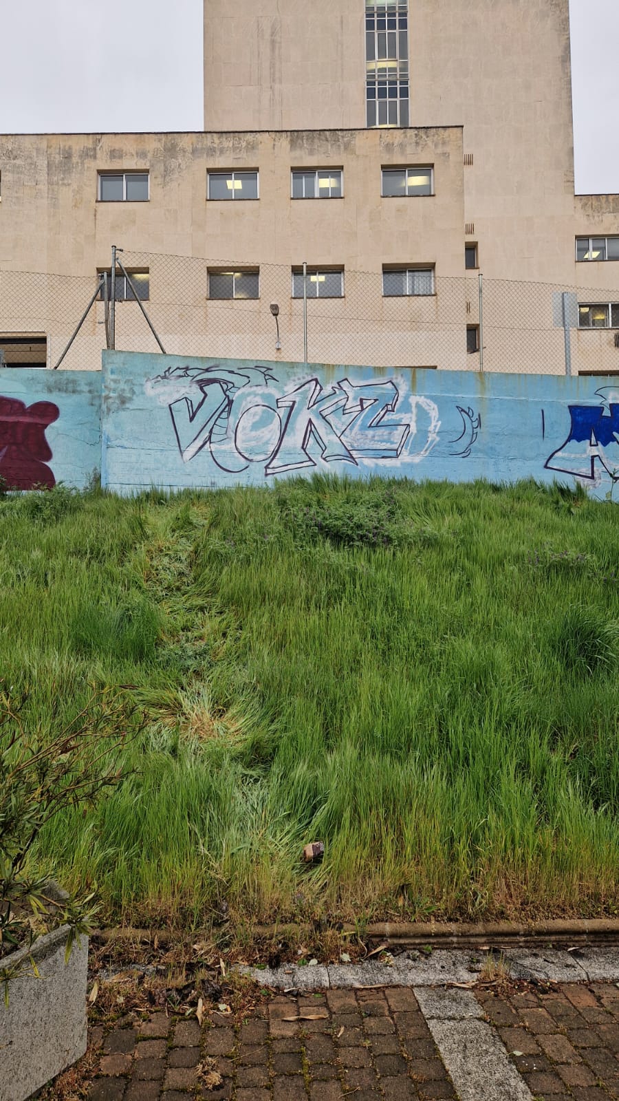 El muro del hospital amanece este miércoles con nuevas pintadas. Se podría decir que están todavía ‘húmedas’ si se tiene en cuenta que el carril de subir y bajar por la hierva aún es muy visible.