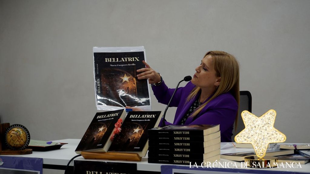 La escritora salmantina María Casquero presentó este miércoles, en la Torre de los Anaya, ‘Bellatrix’, una publicación en la que invita al lector a adentrarse en una constelación de mujeres inolvidables que, a través de la ficción, recuperan el lugar que les corresponde en la memoria colectiva y en el corazón de quienes se acerquen a sus páginas.