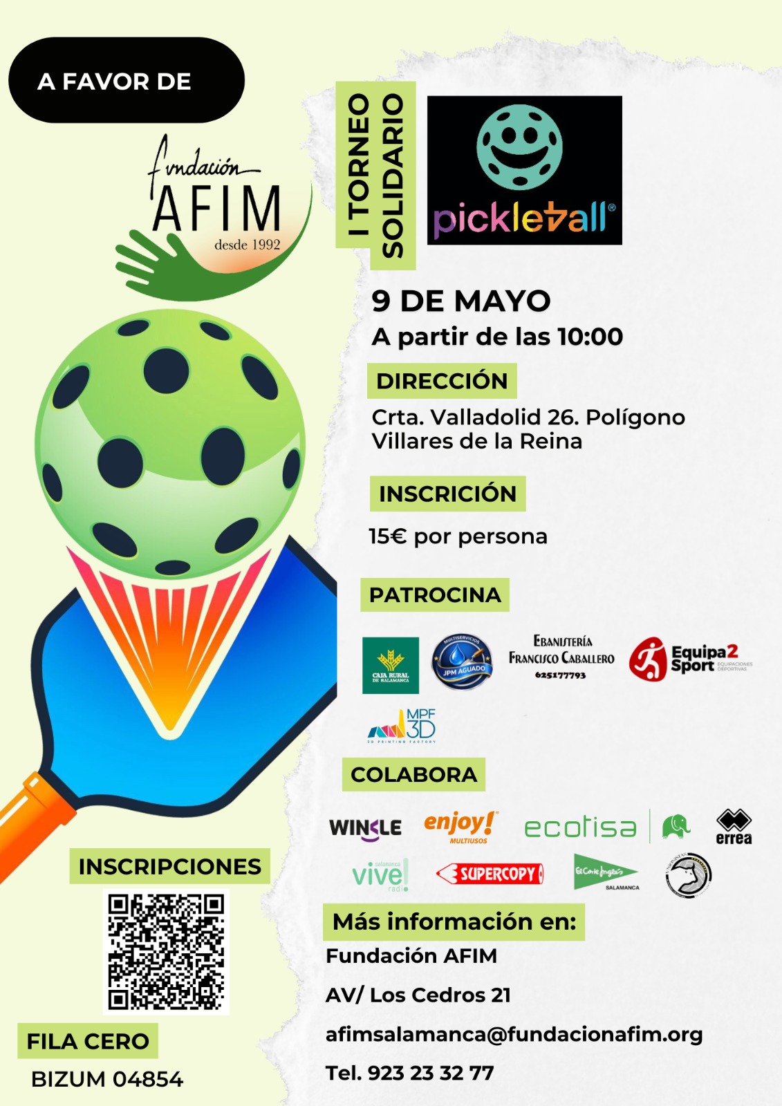 El torneo de pickleball se disputará en la Carretera de Valladolid 26, en el polígono industrial de Villares de la Reina el día 9 de mayo a partir de las 10.00 horas.
