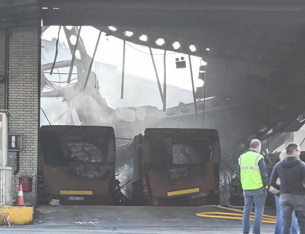 En cuanto a las pérdidas económicas, Ayala reconoció que es “difícil” de cuantificar porque “no todos los autobuses estaban en el mismo estado” si bien estimó que cada autobús nuevo tiene un precio que ronda los 600.000 euros por lo que las pérdidas ascienden a 23,5 millones de euros, a lo que hay que sumar los costes derivados de la destrucción de la nave y del taller donde se guardaban los autobuses.
