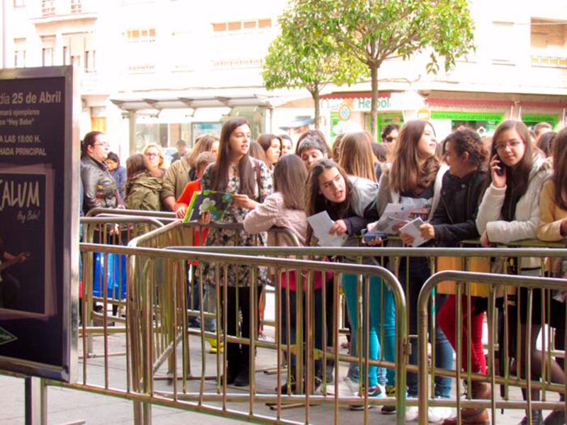 A primera hora de la tarde ya eran multitud las fans que se agolpaban en las inmediaciones del centro comercial de María Auxiliadora para ser las primeras en saludar al nuevo fenómeno musical del momento en nuestro país. Calum ha llegado a los escenarios pisando tan fuerte como su paso por el programa de televisión “La Voz Kids”. Y es que con su preciosa voz, su soltura sobre el escenario y sus azulísimos ojos, este granadino de origen irlandés logra encandilar a sus seguidores que ya son legión como se puede comprobar en las redes sociales: en Instagram ya cuenta con más de ciento noventa mil seguidores mientras que en Twitter cuenta con más de cincuenta mil.
