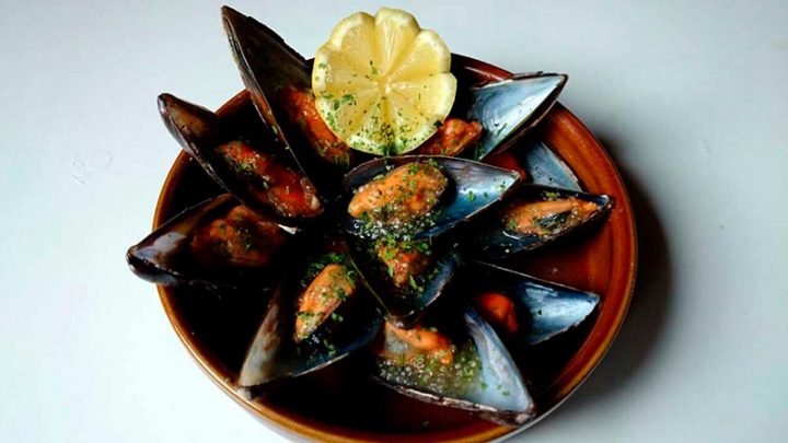 Colocaremos los mejillones en cazuelas individuales para cada comensal y con una cuchara regaremos la vinagreta por encima.
