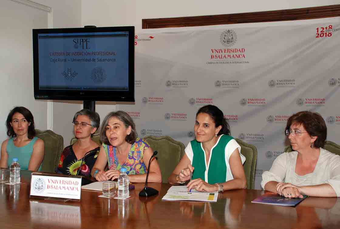 La vicerrectora de Atención al Estudiante y Extensión Universitaria, Cristina Pita, y la directora adjunta de Caja Rural de Salamanca, Isabel Martín Arija, han presentado esta mañana el balance de las actividades desarrolladas por la Cátedra de Inserción Profesional Caja Rural de Salamanca – Universidad de Salamanca.