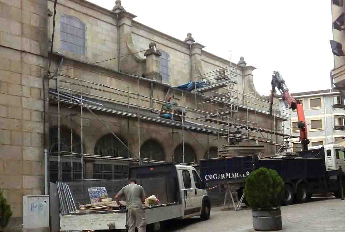 La Iglesia Parroquial de Guijuelo estaba sufriendo una serie de desperfectos que ya en abril contaban con la aprobación de los responsables de la delegación de obras de la Diócesis. Este jueves los operarios encargados de remodelar el tejado de la edificación comenzaron las obras con la colocación de los andamios que les permitirán acceder a lo más alto del edificio central.