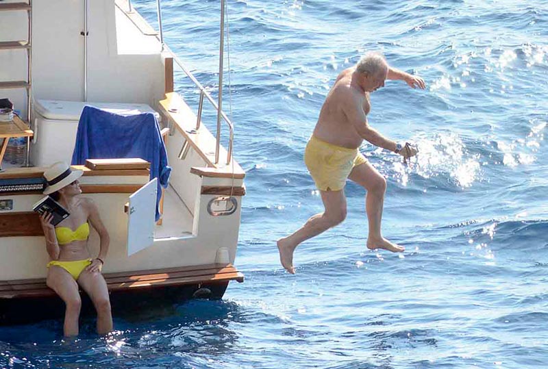 Rato se lanzó al agua desde el barco de unos amigos ante la atenta mirada de su novia, Alicia González, 22 años más joven que él, y que estaba leyendo un libro mientras se refrescaba con los pies en el agua.