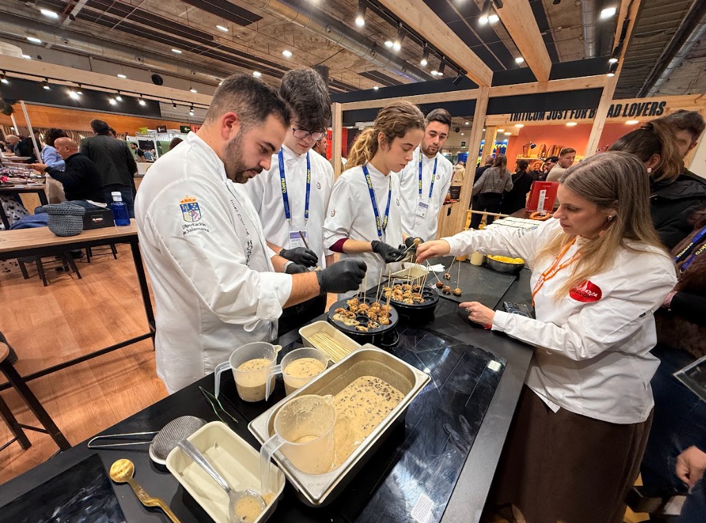 La propuesta presentada -“Takoyaki de Patatas Fátima con farinato y morcilla Hergaher”- fue elaborada por los alumnos de la Escuela de Hostelería de Salamanca