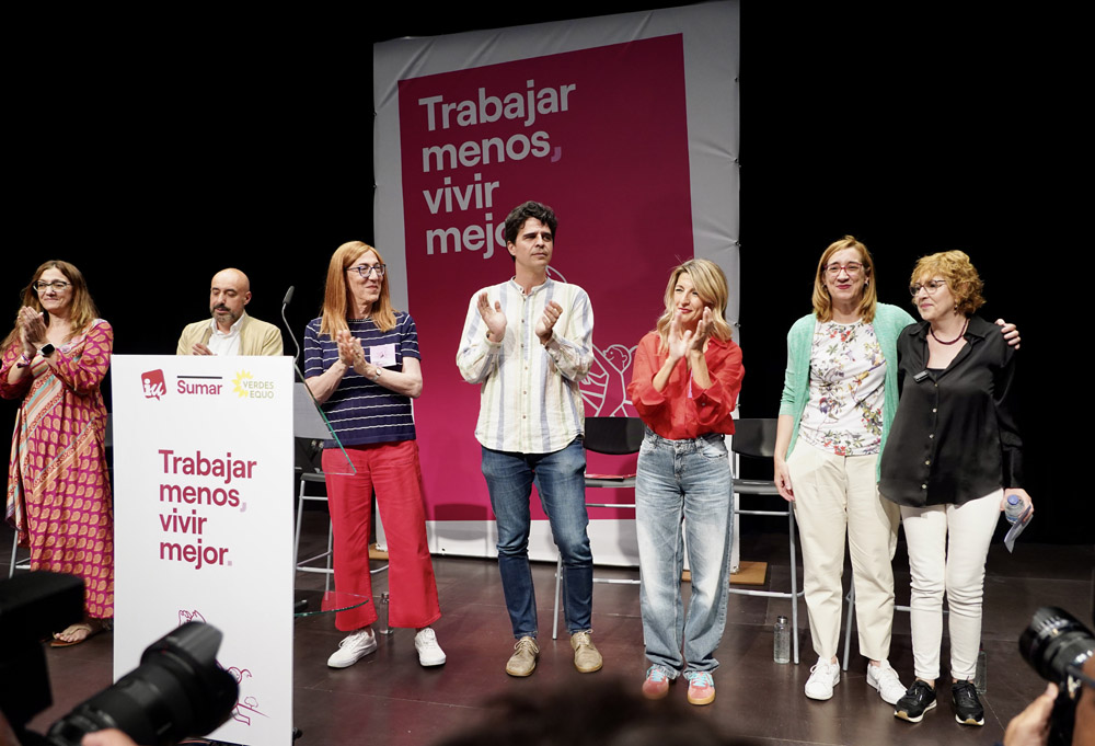 La ministra de Trabajo, Yolanda Díaz, participa en un acto de Sumar por la reducción de la jornada laboral con el lema ‘Trabajar menos, vivir mejor’