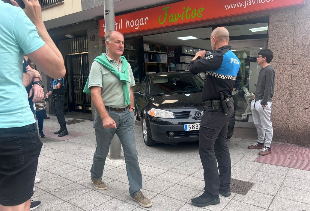 El coche se encontraba aparcado cuando, al parecer por no tener el freno de mano correctamente accionado, comenzó a moverse solo por la vía hasta que acabó en el escaparate de una tienda. No hubo heridos