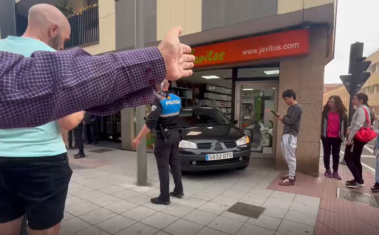 Vídeo | Susto en la Avenida de Villamayor: un coche sin conductor se empotra contra un escaparate
